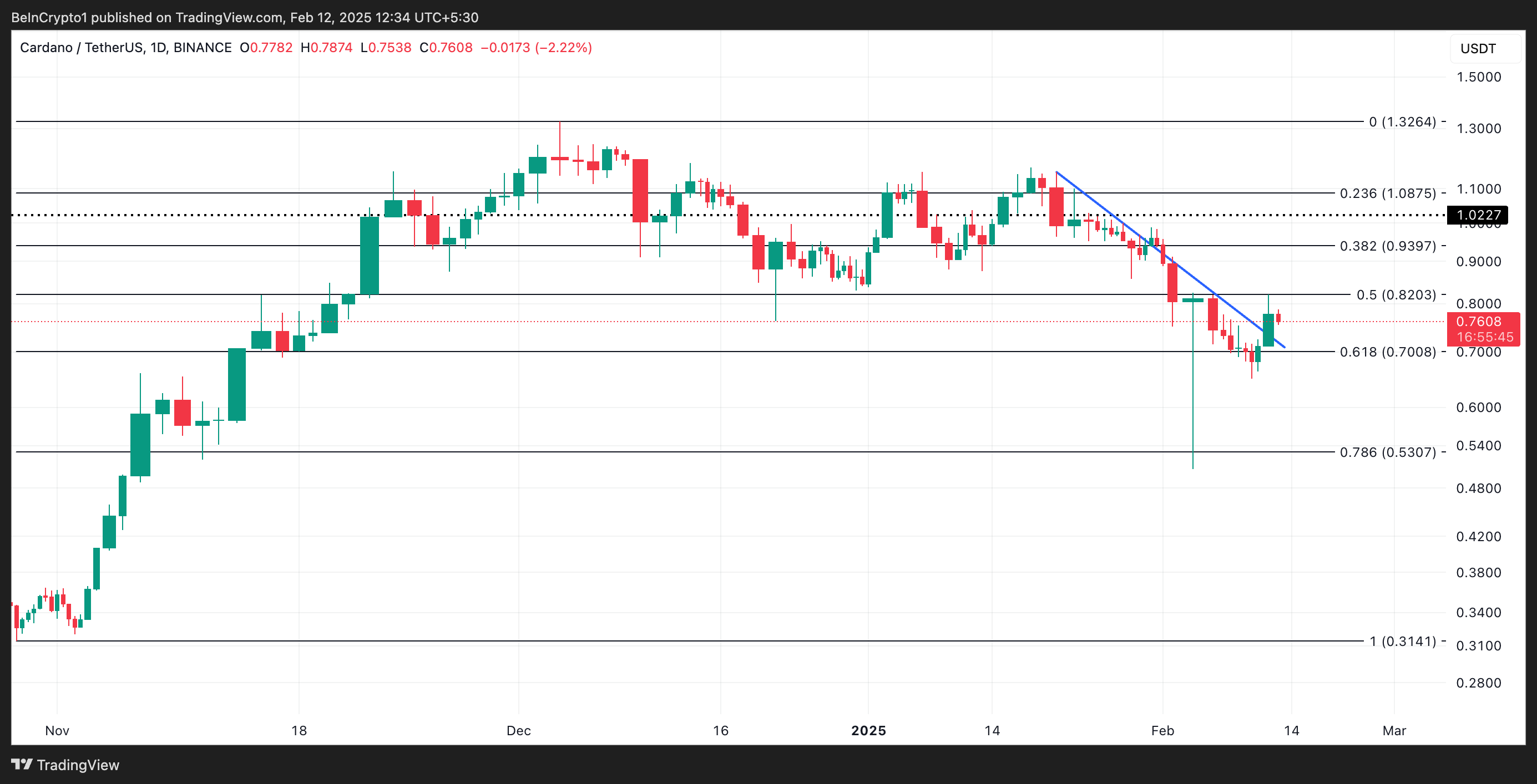 Jeśli tak się stanie, ADA może spaść do 0,70 USD. Jeśli ten poziom nie utrzyma się, altcoin może kontynuować spadek w kierunku 0,53 USD – poziomu ostatnio widzianego w dniu 3 lutego.