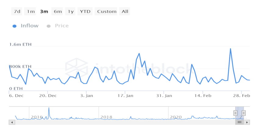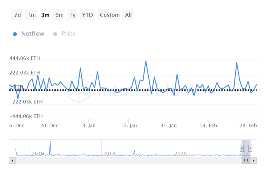 Napływ środków do sieci Ethereum (ETH) wyniósł 546 120 w dniu 28 lutego.
