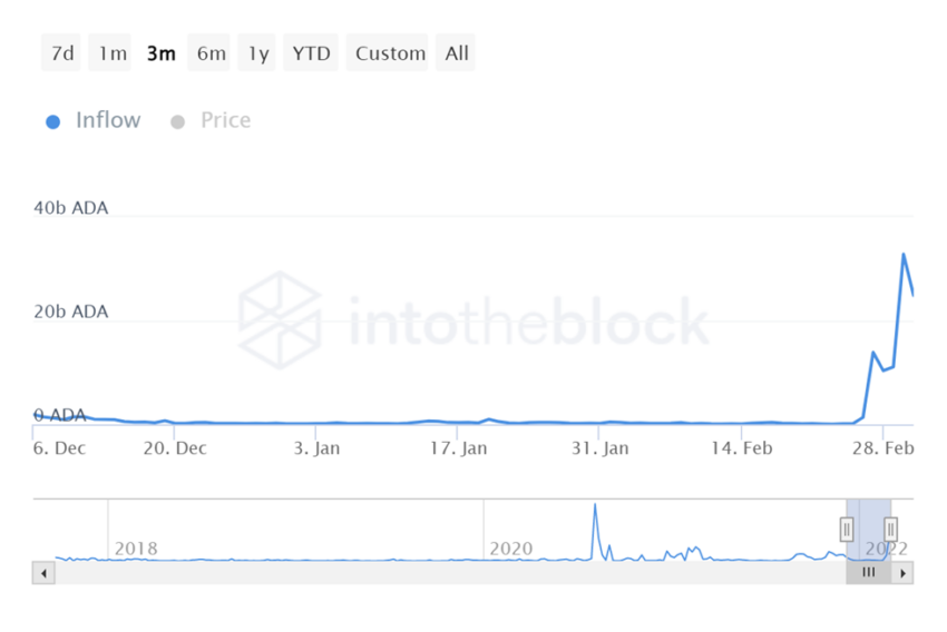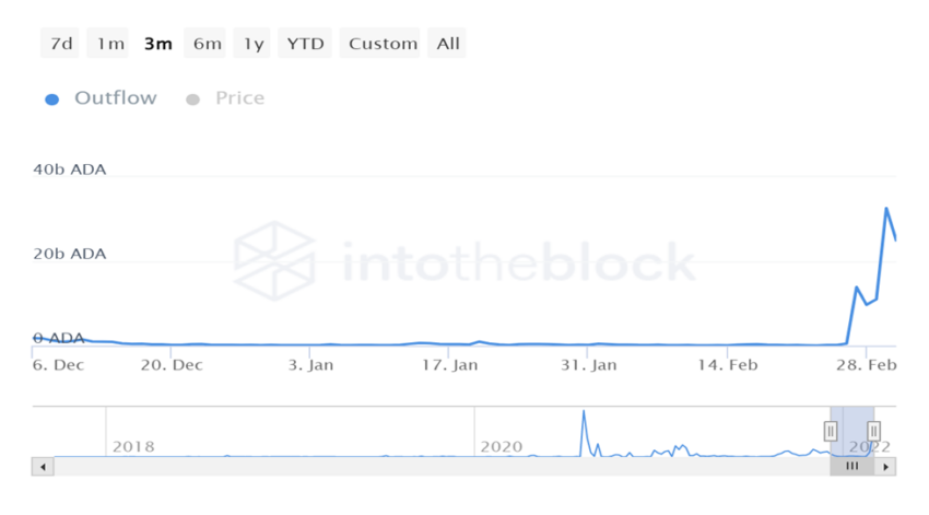 Natomiast wypływy na Cardano (ADA) w dniu 28 lutego wyniosły 9,7 mld.