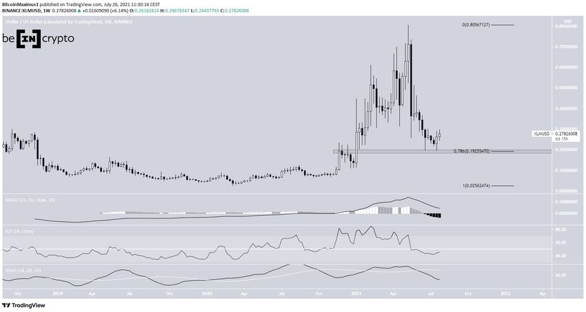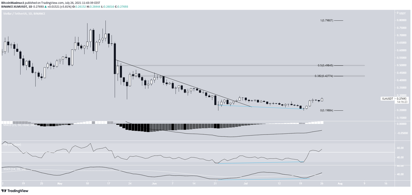 Stellar (XLM) porusza się w dół od maja, ale na krótko odwrócił swoją trajektorię i odbił się w dniu 22 czerwca.