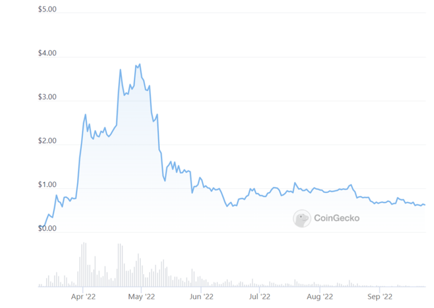 Jego siostrzany token STEPN (GMT), używany do zarządzania w ekosystemie STEPN, ucierpiał w podobny sposób. Osiągnął również ATH w wysokości 3,80 USD w dniu 29 kwietnia 2022 r. Następnie spadł bardziej gwałtownie niż GST i osiągnął dołek na poziomie 0,58 USD około połowy czerwca 2022 r. Obecnie token jest notowany na 0,62 USD, co oznacza spadek o prawie 85% w stosunku do ATH.