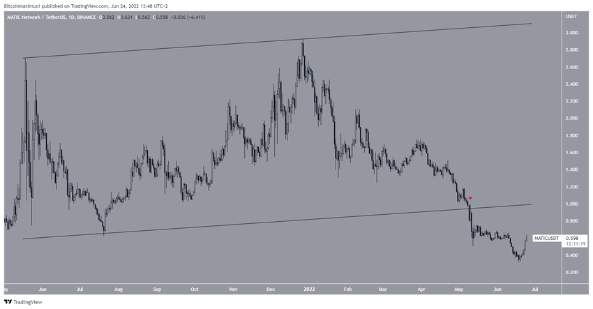 MATIC od maja 2021 r. notowany był w długoterminowym, rosnącym kanale równoległym. Jednak na początku maja 2022 r. wyłamał się z niego, co doprowadziło do najniższego poziomu 0,31 USD w dniu 18 czerwca.