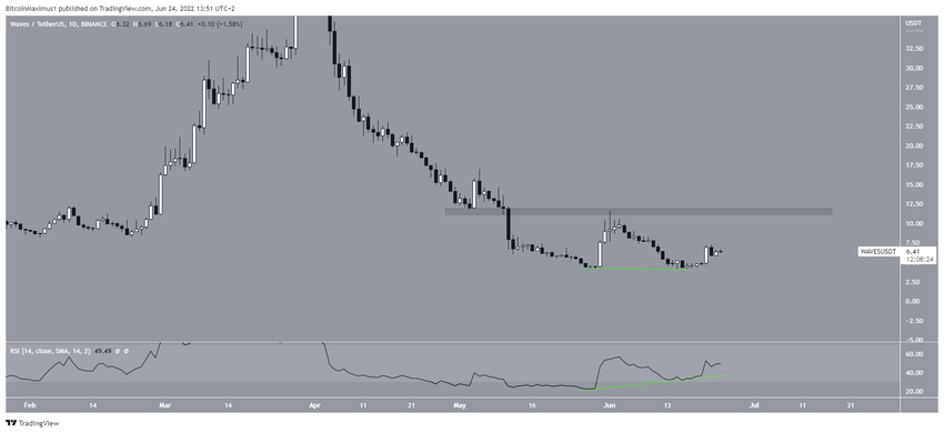 Między 23 maja a 18 czerwca WAVES stworzyło podwójne dno. Jest to uważane za byczy wzór, który często prowadzi do ruchu w górę.
