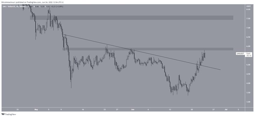 Istnieje silny poziom oporu na poziomie 5,90 USD, a jeśli UNI jest w stanie przekroczyć ten poziom, następny opór wyniesie 7,60 USD.