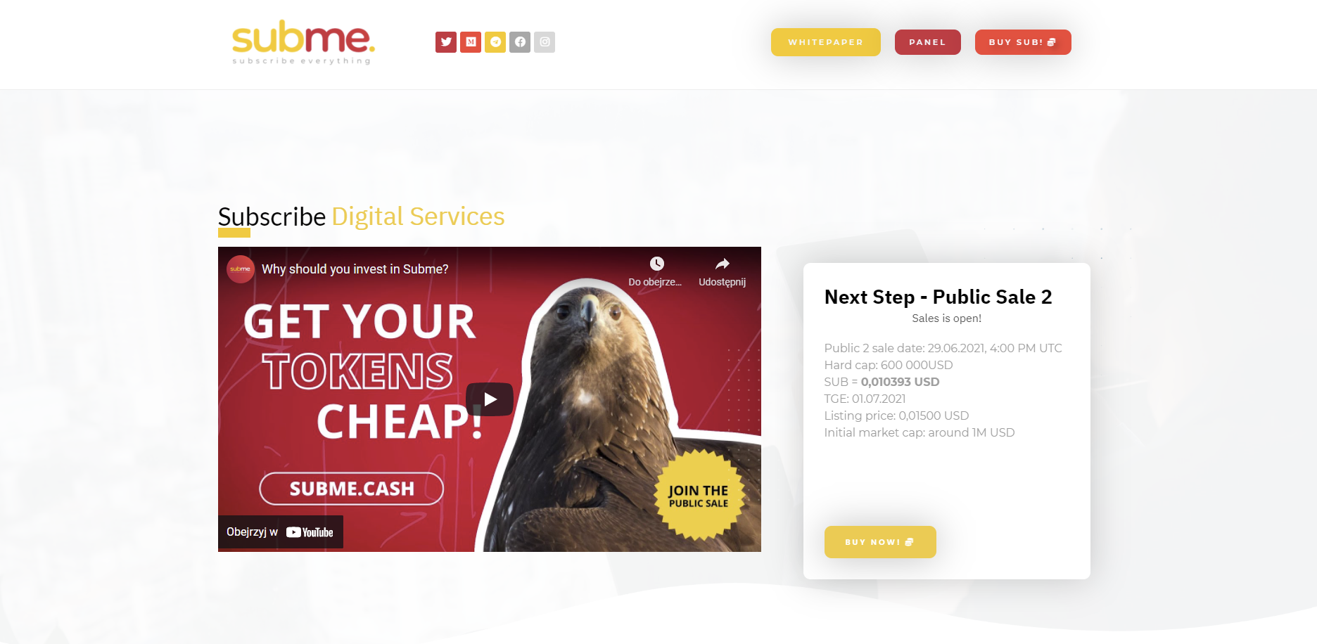 Sumbe to projekt łączący świat kryptowalut oraz prężnie rozwijającą się ekonomię subskrypcyjną. Jego celem jest zmiana naszego podejścia do rynku e-commerce. Subme ma ułatwić zarządzanie subskrypcjami takimi, jak Spotify czy Netflix z poziomu jednej aplikacji oraz zastosować model subskrypcyjny do sprzedaży produktów fizycznych czy finansowych.