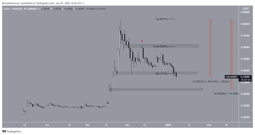 GALA również spadała od swojego rekordowego poziomu 0,84 USD 26 listopada. 13 grudnia potwierdziła poziomą strefę oporu 0,61 USD i wznowiła opadanie.