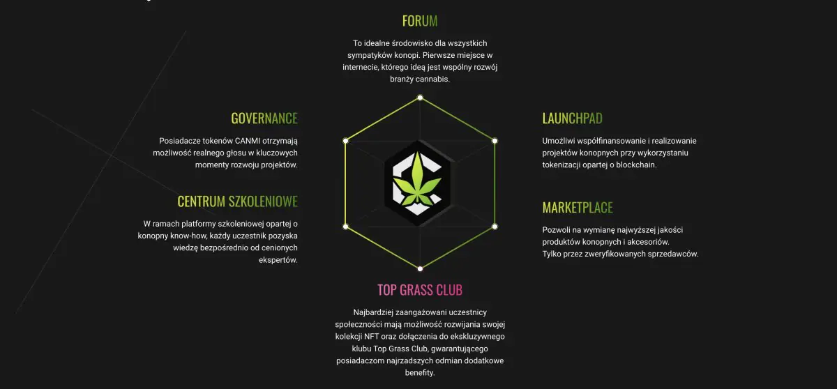Launchpad, konopny marketplace, token CANMI, platforma learningowa czy klub NFT, to tylko niektóre z licznych możliwości, jakie przyniesie zielona, wszak technologiczna rewolucja spod znaku Cannumi.