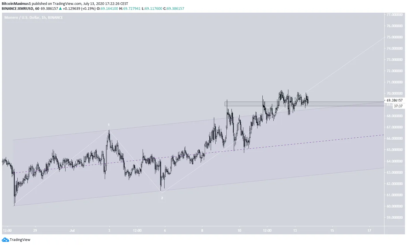 Ponadto, cena XMR odzyskała niewielki obszar 69 dolarów jako wsparcie. Tak długo, jak jest to handel powyżej tego obszaru i kanału, oczekujemy, że będzie on nadal wzrastał.