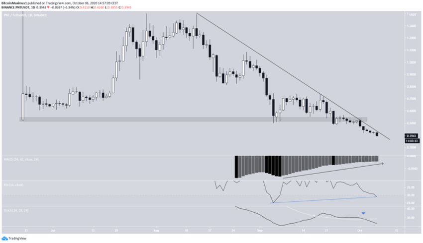 Na początku października cena załamała się z obszaru wsparcia na 0,53 USD i osiągnęła nowy najniższy poziom w historii.