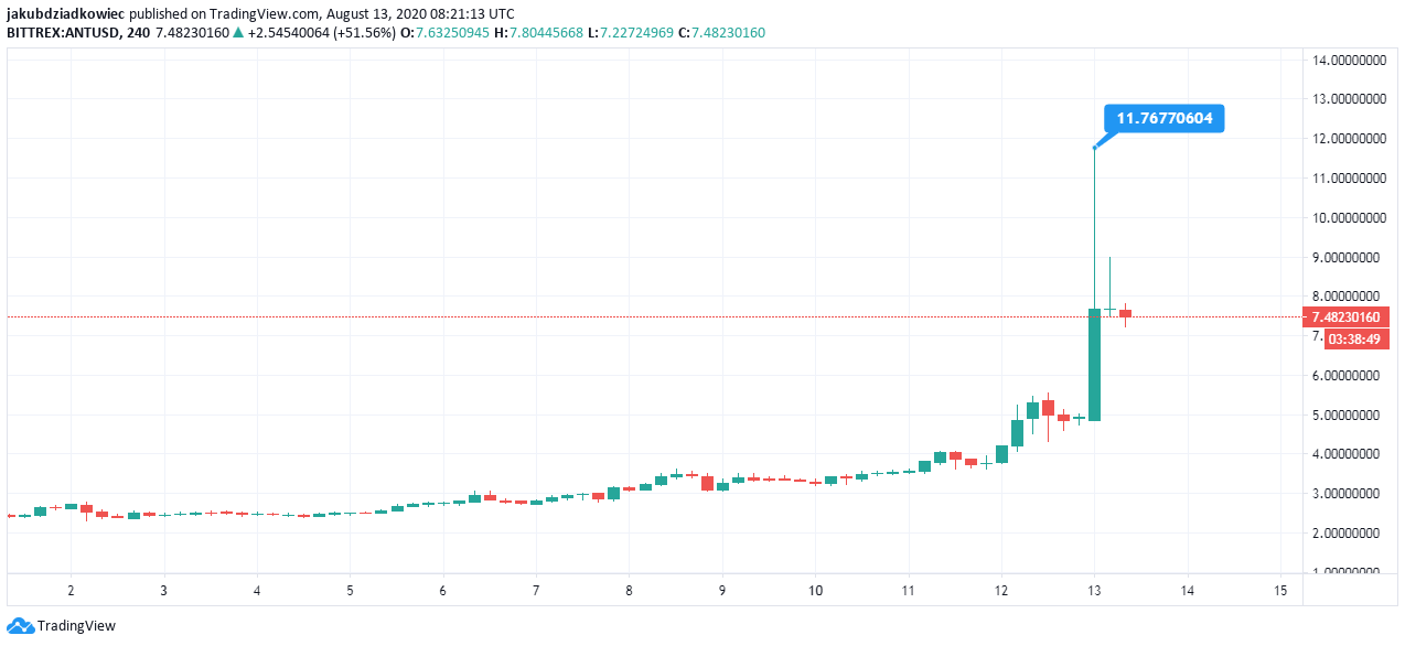 Dziś nad ranem czasu polskiego Binance wydało komunikat o rozpoczęciu listingu następujących par ANT/BNB, ANT/BTC, ANT/BUSD i ANT/USDT:
