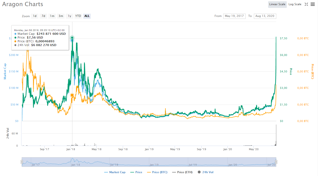 Informacja ta podbiła cenę Aragona o 143% w zaledwie 4 godziny (z 4,85 do 11,77 USD), aby chwilę później doprowadzić do mocnego spadku: