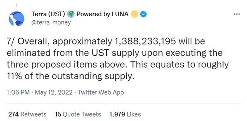 W wątku na Twitterze z 11 maja Do Kwon, współzałożyciel Terraform Labs, zwrócił uwagę na to, jak gospodarka Terra rozwiąże problemy z zatorami wynikającymi z masowego spalania UST.