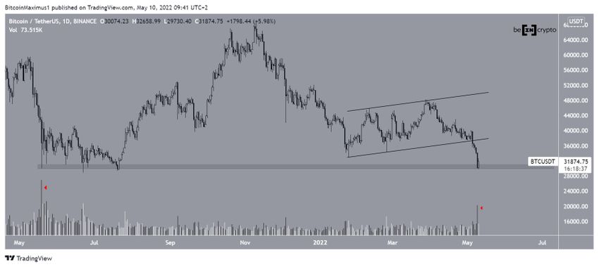 Bitcoin był notowany wewnątrz wznoszącego się kanału równoległego od dnia 21 stycznia. W dniu 5 maja ostatecznie się z niego załamał i znacznie przyspieszył tempo spadku.