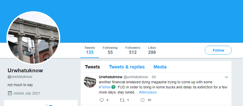 Dyrektor generalny Tether usunął swoje konto na Twitterze po ostatnim raporcie Bloomberga. Artykuł zawiera kilka twierdzeń, w tym, że Tether jest winien miliardy chińskim inwestorom. Wyciek ujawnia, że uzyskał dokumenty pokazujące konto rezerw Tether Holdings, które obejmują:
