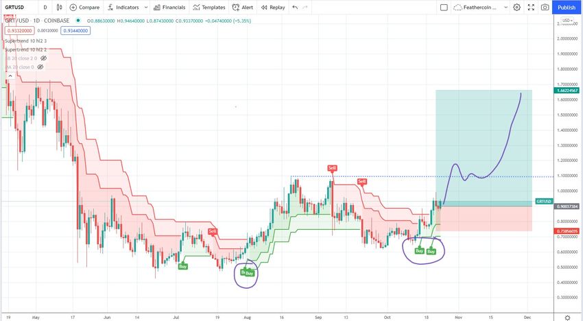 The Graph (GRT) przebija się powyżej wrześniowych szczytów i nie napotyka praktycznie żadnego oporu aż do poziomu 1,65 USD.