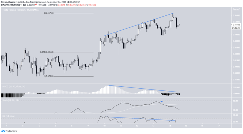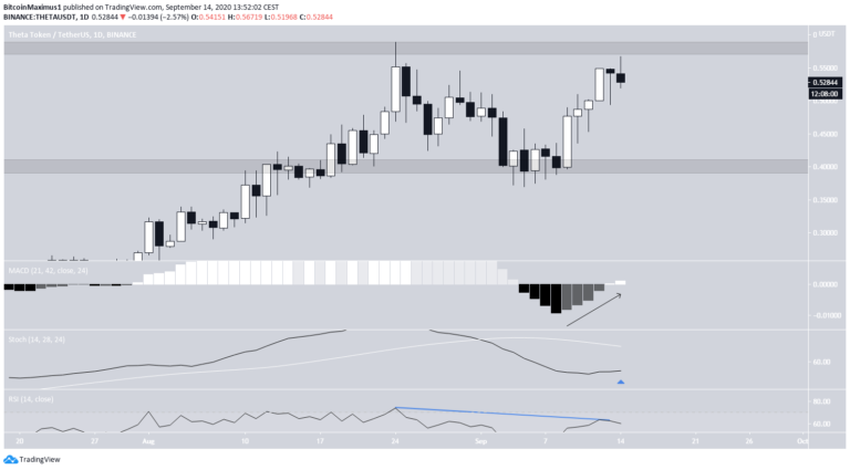 Następnie cena wzrosła wraz z rosnącą linią wsparcia i podjęła kolejną próbę przebicia się powyżej obszaru 0,58 USD, która również zakończyła się niepowodzeniem. W momencie publikacji tego tekstu THETA podejmuje kolejną próbę wybicia.