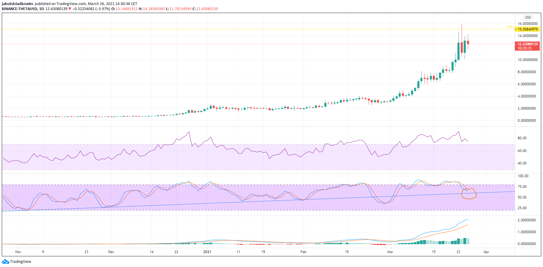 Paraboliczny wzrost THETA, który trwa od początku roku, nie jest możliwy do utrzymania w długim terminie. Jednak w najbliższym czasie, po ukończeniu bieżącej korekty, jest możliwe przebicie poziomu 15 USD i ustanowienie nowego ATH.
