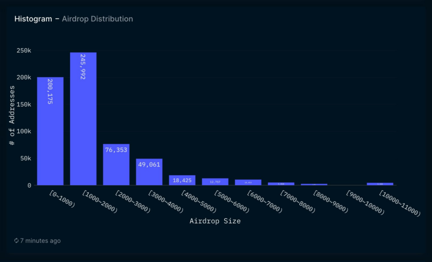 Firma analityczna Nansen podała, że 625 143 adresy kwalifikują się do zrzutu tokena ARB. Firma dodała, że mediana wielkości zrzutu wynosi 1 250 ARB, podczas gdy ponad 4 400 adresów może ubiegać się o 10 250 ARB.