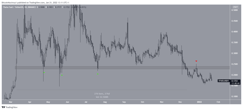 TFUEL notowany był powyżej poziomu 0,23 USD przez okres 276 dni, począwszy od 8 marca. 4 grudnia załamał się i zatwierdził jako opór (czerwona ikona) w dniu 27 grudnia. Od tego czasu token przesuwał się w dół.