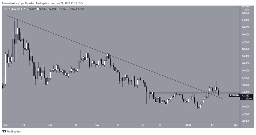 FTT podążał za malejącą linią oporu od 9 września, co doprowadziło do najniższego poziomu 33,8 USD w dniu 8 stycznia. Jednak później token odwrócił trend i od tego czasu poruszał się w górę. 14 stycznia wyrwał się z opadającej linii oporu.