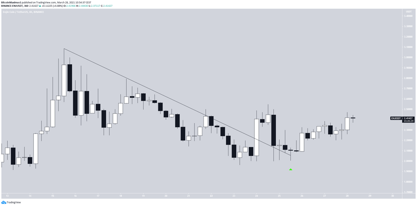 Jeśli chodzi o akcję cenową, to ENJ wybił się z opadającej linii oporu i potwierdził ją później jako wsparcie.