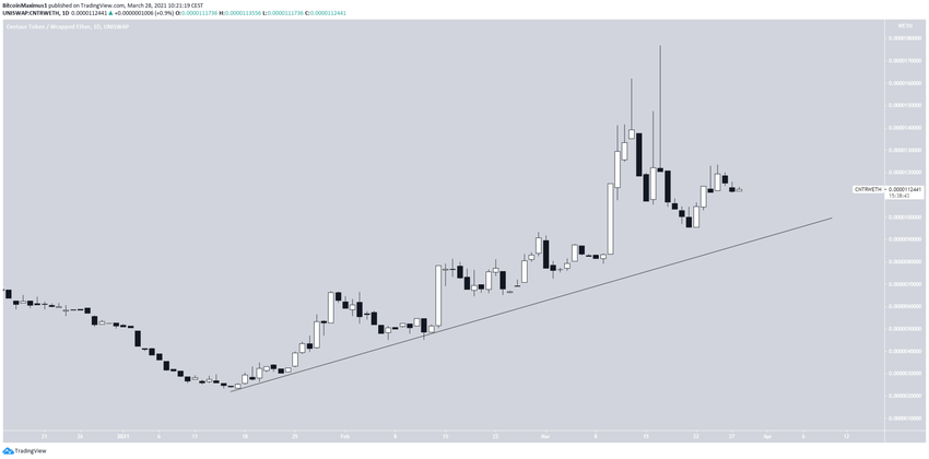Jeśli chodzi o ruch cenowy, to wydaje się, że CNTR podąża za rosnącą linią wsparcia od 16 stycznia.