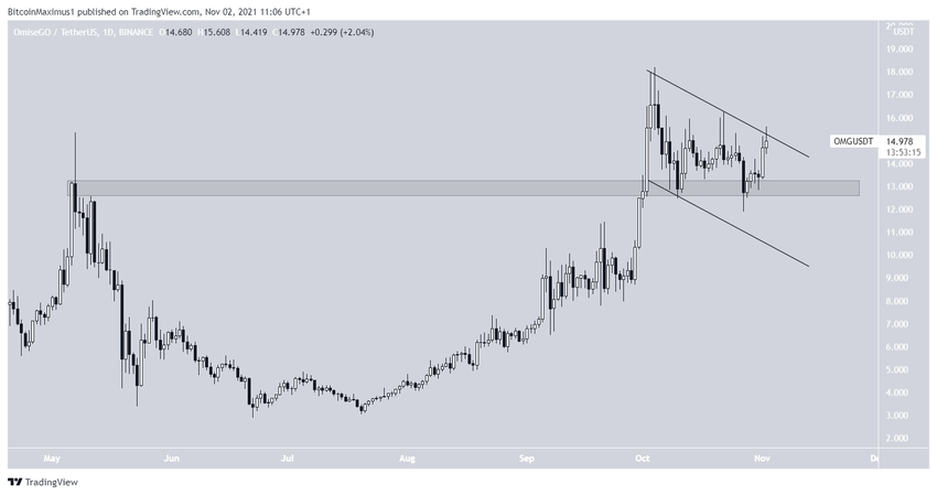 OMG spada od czasu osiągnięcia ATH w dniu 4 października. Spadek ten prawdopodobnie przybrał kształt opadającego kanału równoległego. Obecnie OMG jest w trakcie wybijania się ze zniżkującego kanału równoległego.