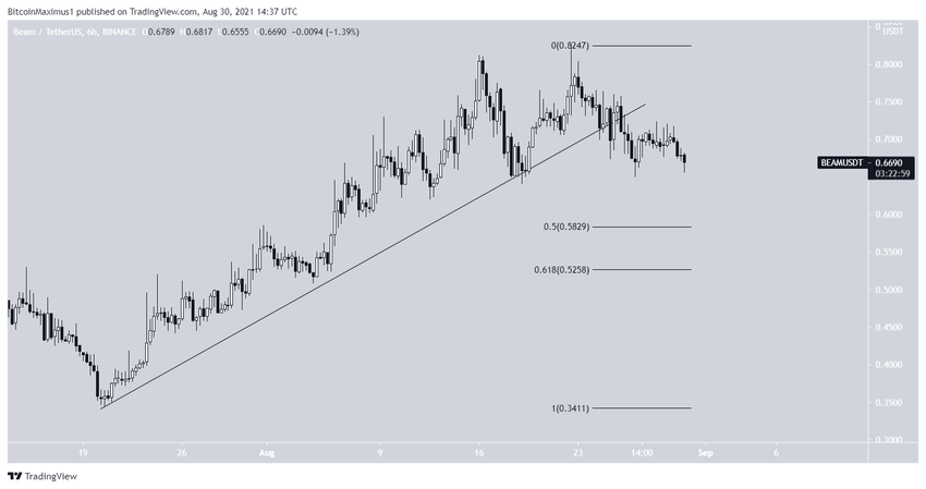BEAM od 20 lipca rósł wzdłuż rosnącej linii wsparcia. Jednak w dniu 26 sierpnia załamał się z niej i od tego czasu porusza się w dół.