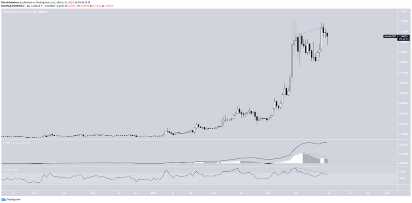 W dniu 14 marca MANA osiągnęła rekordową cenę 1,21 USD. Po spadku, MANA podjęła kolejną próbę wybicia, ale zaczęła słabnąć.