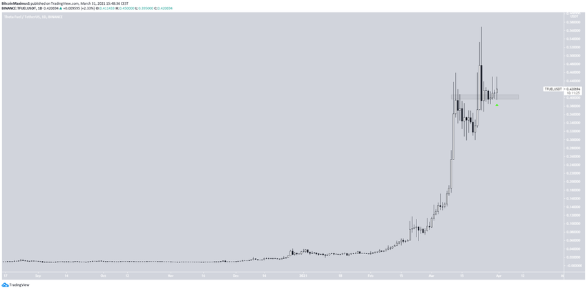 TFUEL spada od czasu osiągnięcia rekordowego poziomu 0,568 USD w dniu 24 marca. Nadal jednak notowany jest powyżej wsparcia na poziomie 0,40 USD.