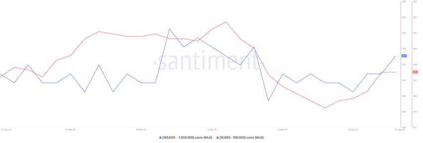 WLD również przyciągnął akumulację, nawet po 19% spadku w ciągu ostatnich 30 dni, z wielorybami zwiększającymi swoje pozycje w ciągu ostatnich czterech dni. Ta zmiana w zachowaniu on-chain sugeruje, że niektórzy duzi gracze mogą przygotowywać się na potencjalne odbicie tych aktywów.