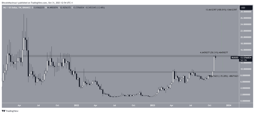 Tak więc, jeśli INJ się wybije, może podwoić cenę i osiągnąć nowy rekord wszechczasów na poziomie 27 USD.