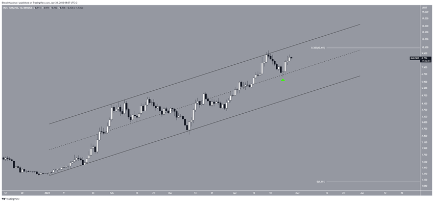 Cena INJ wzrasta wewnątrz wznoszącego się kanału równoległego od początku roku. Wznoszący się kanał równoległy jest rodzajem formacji korekcyjnej, w której cena odbija się pomiędzy dwiema równoległymi liniami, zanim w końcu prawdopodobnie załamie się w dół.
