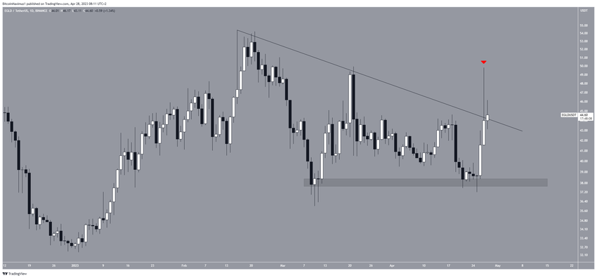 Jeśli dojdzie do wybicia, EGLD może wzrosnąć do 50 USD. Jeśli jednak linia spowoduje kolejne odrzucenie, spadek do 38 USD będzie możliwy.