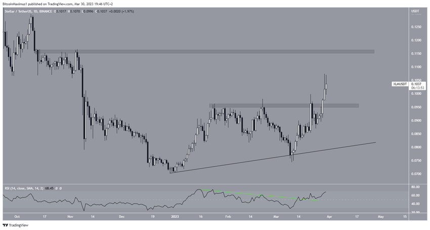Jeśli wzrost będzie kontynuowany, Stellar może przesunąć się do następnego oporu przy 0,115 USD. Jeśli jednak cena zamknie się poniżej obszaru wsparcia przy 0,095 USD, unieważni to byczą strukturę. Dalej może to doprowadzić do spadku do wstępującej linii wsparcia przy 0,080 USD.