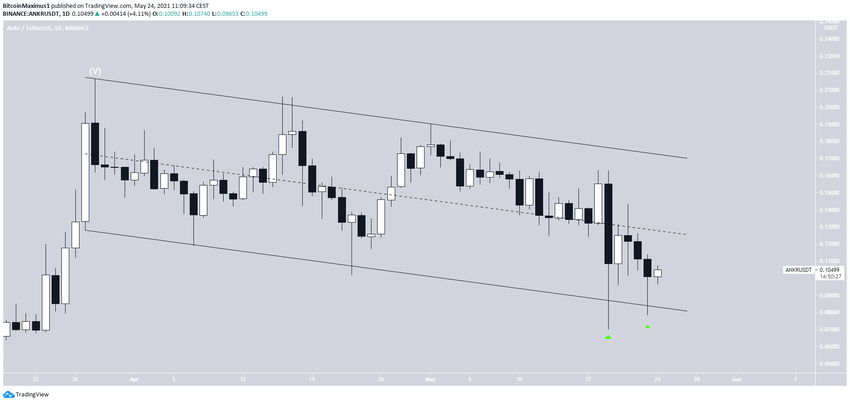 Podobnie jak HNT i HBAR, ANKR handluje w kanale zstępującym. Robi to, odkąd w dniu 28 marca osiągnął nowy rekord wszech czasów na 0,21 USD.