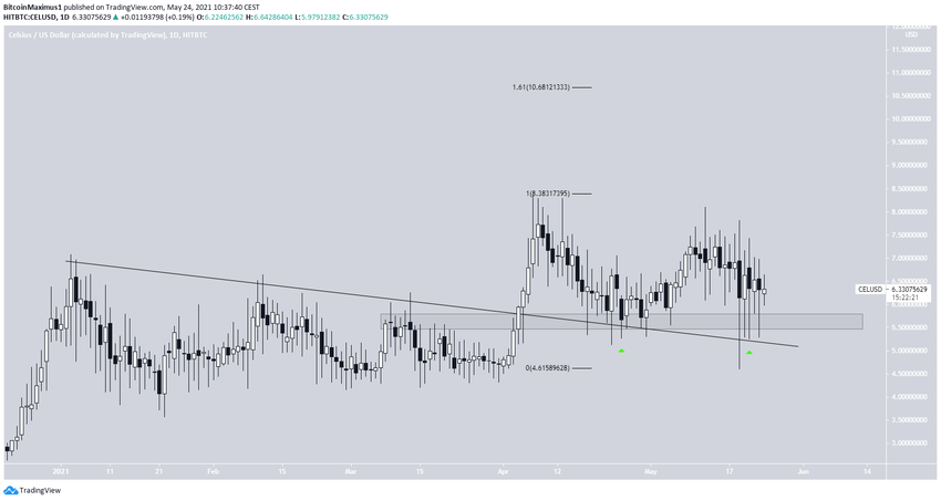 Sponsored SponsoredNastępnie nastąpiła korekta, która posłużyła do dwukrotnej weryfikacji tej linii jako wsparcia w dniach 24 kwietnia i 19 maja. Za każdym razem następowało odbicie z dużą siłą (zielone ikony). Wraz z ostatnim odbiciem CEL odzyskał również horyzontalny obszar 5,60 USD jako wsparcie.