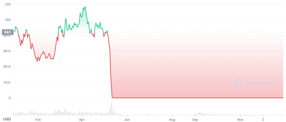 Pierwotnie ogromny projekt, synonim upadku. Jego cena runęła o przeszło 99,99% w maju tego roku. Główną przyczyną był brak zabezpieczenia kapitału oraz wątpliwe zarządzanie projektem przez jej założyciela, Do Kwona. Przez pewien czas próbowano ożywić na nowo projekt poprzez forka, natomiast nie przyniosło to oczekiwanego rezultatu. Obecnie projekt funkcjonuje zarówno pod nazwą Terra Classic i Terra 2.0, który jest rezultatem zapropowanego forka.