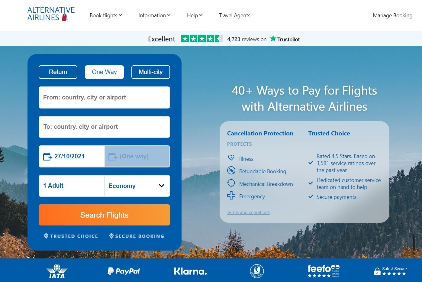 Alternative Airlines pozwala na wiele podróżniczych możliwości. Niezależnie od tego, czy kupić proste bilety w obie strony, czy chcesz wybrać się na skomplikowaną trasę obejmującą wiele miast, Alternative Airlines wykona dla Ciebie zadanie. W Alternative Airlines możesz płacić w ponad 160 walutach. Oprócz tego firma oferuje ponad 40 międzynarodowych bramek płatności.