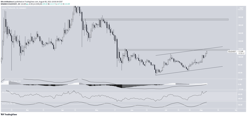 EGLD rośnie od 22 czerwca i utworzył wyższy dołek 20 lipca.