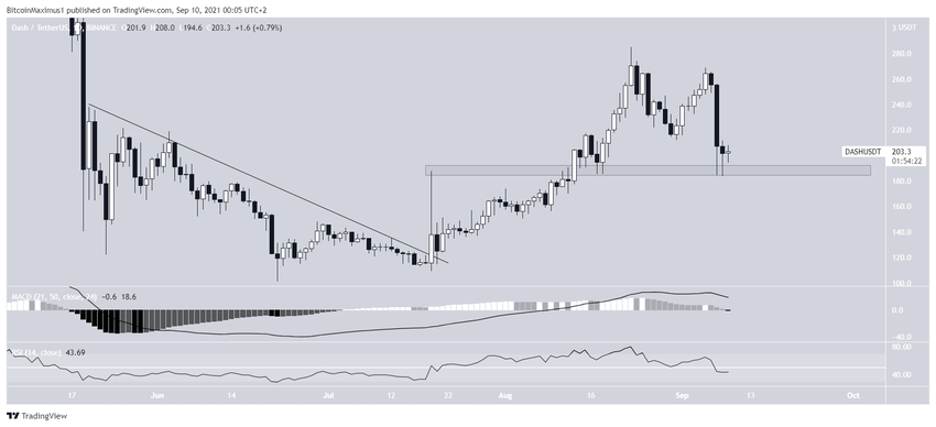 Obecnie DASH jest notowany tuż powyżej horyzontalnego obszaru wsparcia na poziomie 190 USD, gdzie zatrzymał się.