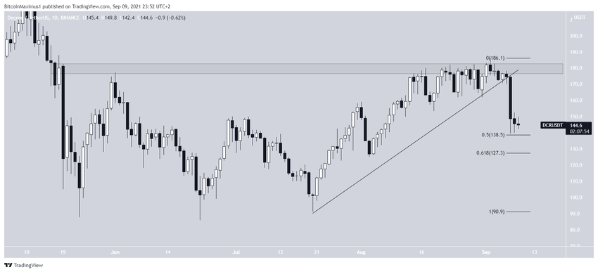 DCR porusza się w górę od dnia 20 lipca. W okresie od 17 sierpnia do 3 września, altcoin próbował wybić się powyżej obszaru 180 USD.