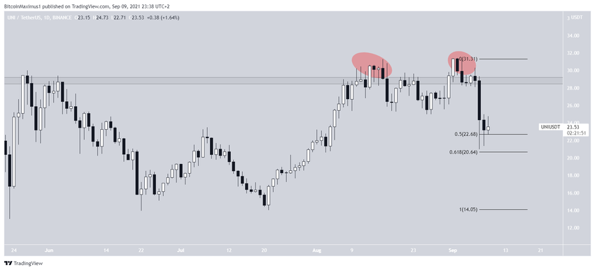 W dniu 13 sierpnia UNI przebił się ponad obszar oporu przy 29 USD. Po niewielkim spadku, 1 września nastąpiło ponowne wybicie.