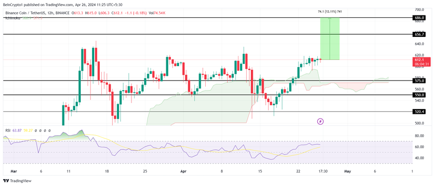Osiągając dalszy wzrost o ponad 12%, moneta BNB ma spore szanse na trend wzrostowy w maju.