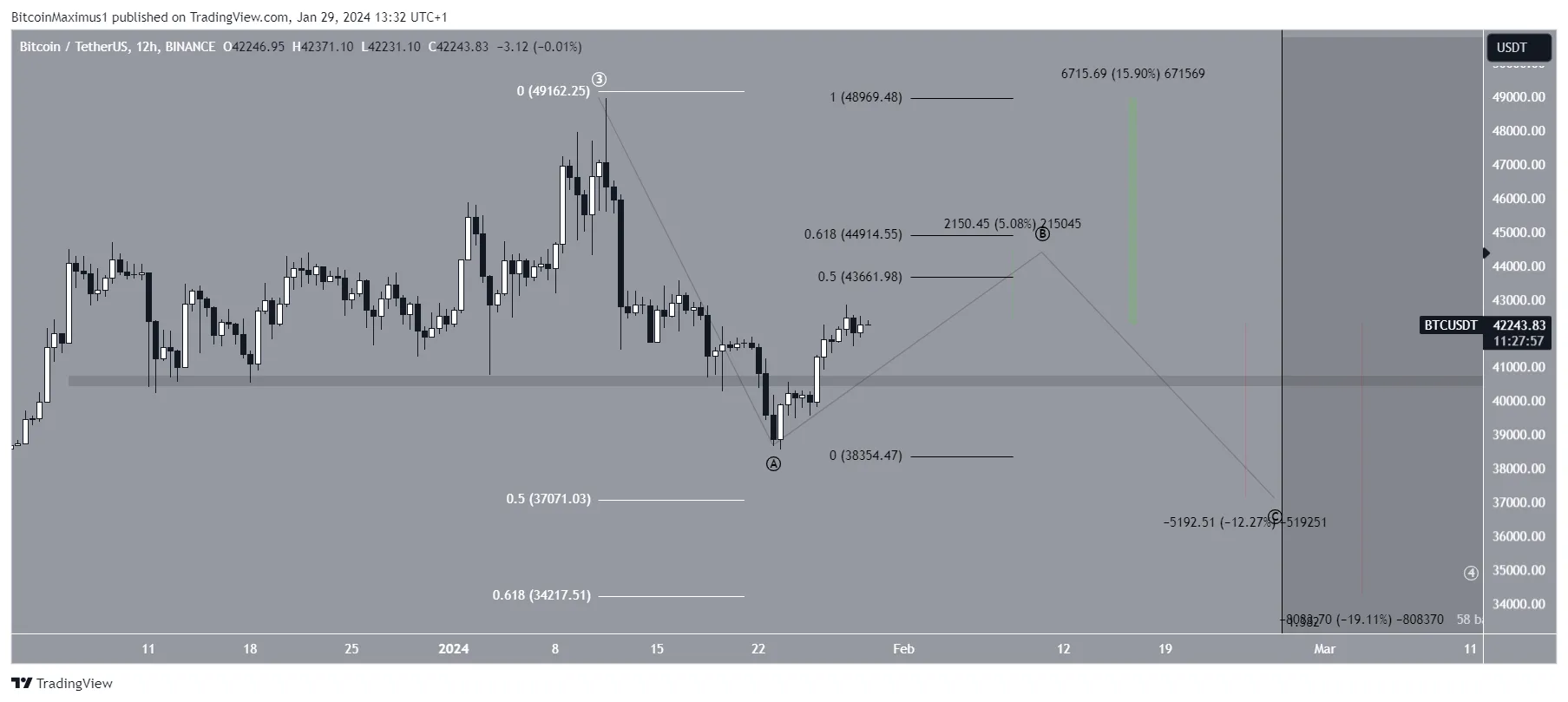 Następnie BTC utracił horyzontalny obszar 41 000 USD, który zapewniał wsparcie od grudnia 2023 roku. Pomimo załamania, cena Bitcoina odzyskała równowagę 23 stycznia i od tego czasu wzrosła, odzyskując obszar wsparcia następnego dnia.