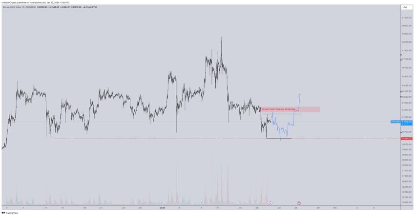 W dniu 20 stycznia CredibleCrypto przewidziało odchylenie poniżej poprzedniego dołka zakresu, stwierdzając, że cena BTC odbije się po jego zakończeniu.