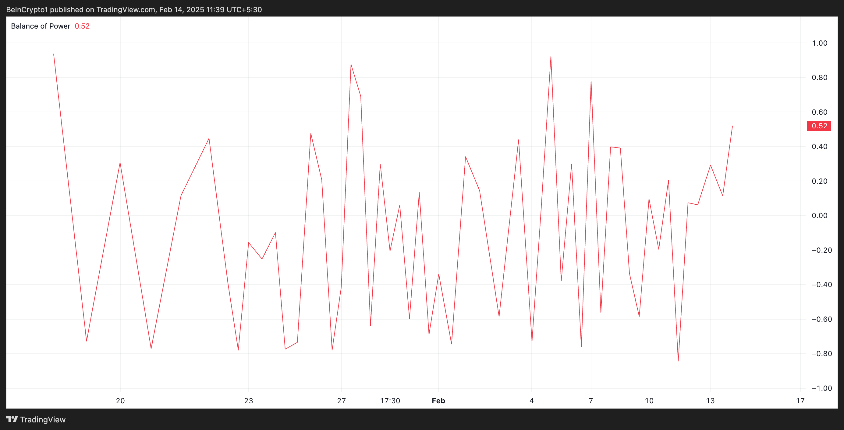 SponsoredDodatkowo pozytywny wskaźnik Balance of Power (BoP) wskazuje, że byki TRUMP mają znaczną kontrolę nad rynkiem. W momencie publikacji wynosi on 0,52.