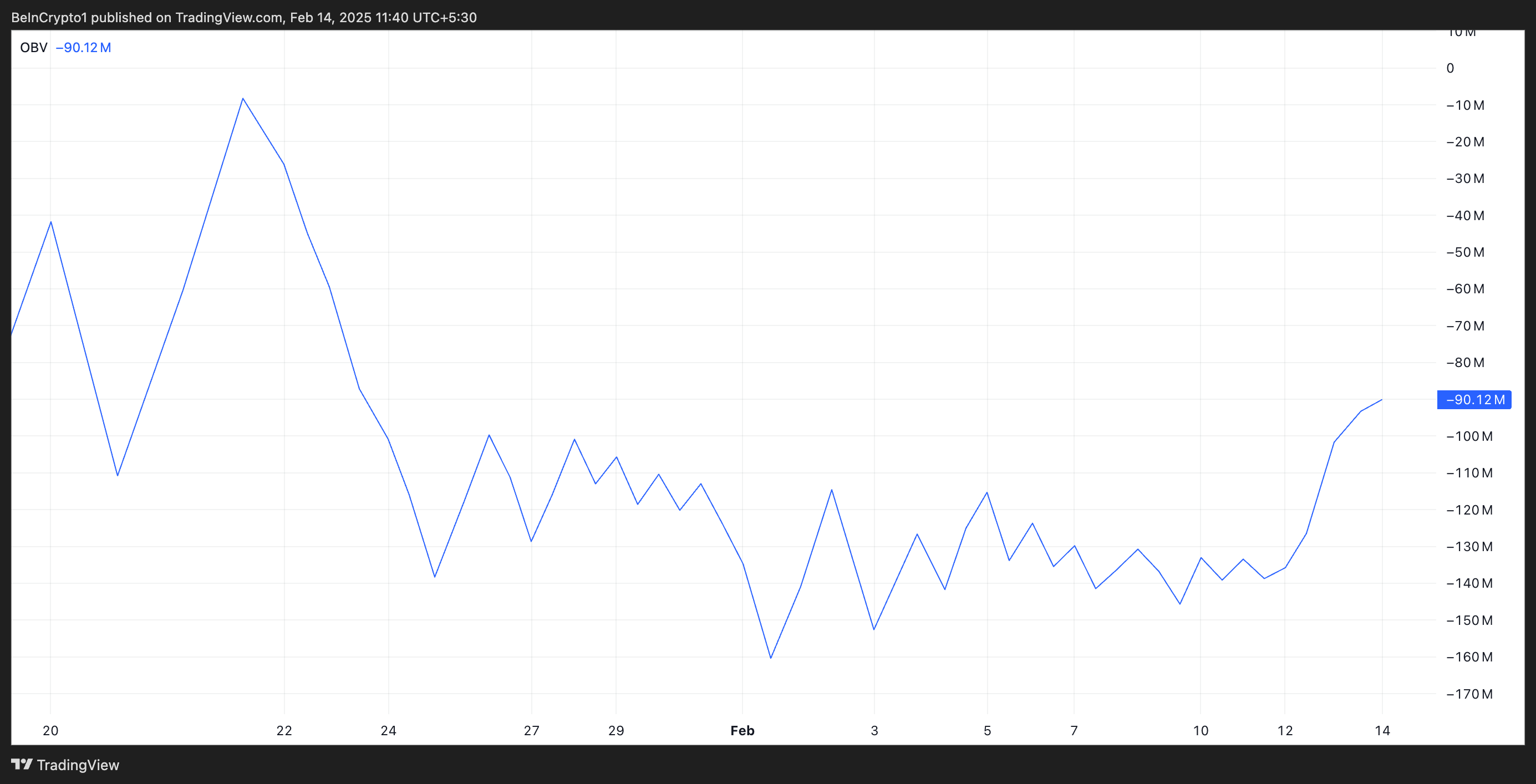 Niedawne odbicie TRUMP podniosło jego cenę powyżej opadającej linii trendu, która wcześniej utrzymywała go w trendzie spadkowym. Ten wzór pojawił się 20 stycznia, po tym jak moneta osiągnęła dzienny szczyt na poziomie 56,20 USD. W momencie pisania tego tekstu cena wynosi 16,55 USD, co oznacza spadek o 71%.