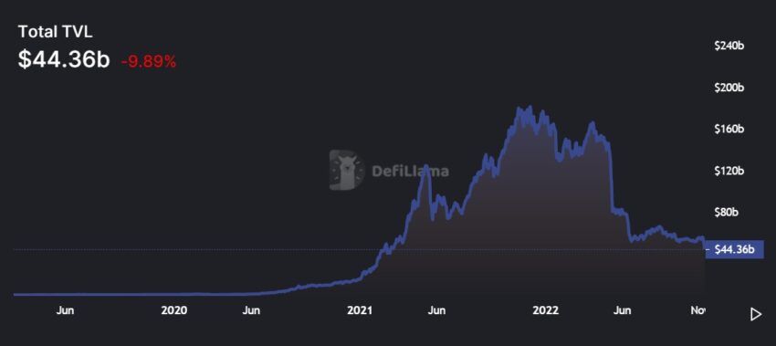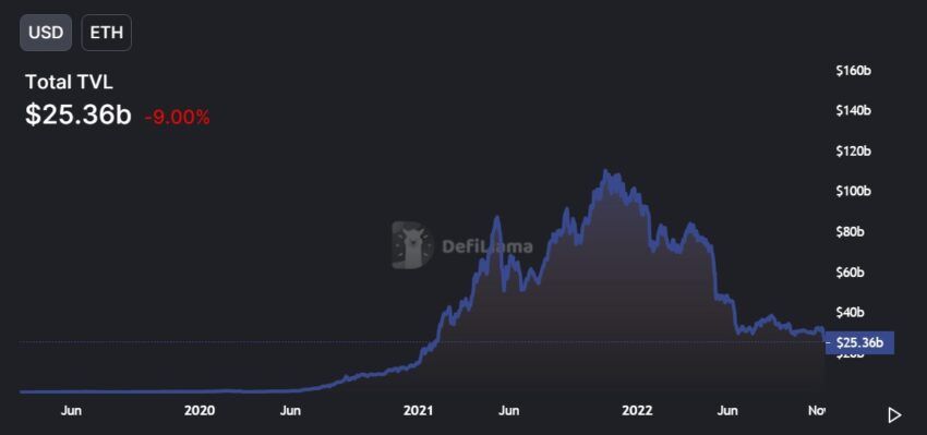 Rynek DeFi zaliczył ogromny upadek, z jego całkowitą wartością zablokowaną (TVL), uderzając w 20-miesięczne minima. Dzieje się tak, ponieważ rynek kryptowalut krwawi w następstwie upadku FTX.