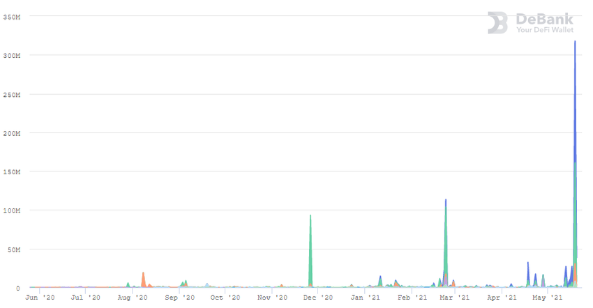 Jeśli chodzi o pożyczki, wolumen rozliczeń pożyczek DeFi na Ethereum przekroczył 317 milionów USD 19 maja, przy czym zdecydowana większość pochodziła od Aave i Compound. Wolumeny likwidacji w ciągu 24 godzin według tego protokołu wynoszą odpowiednio 167 mln USD i 120 mln USD.